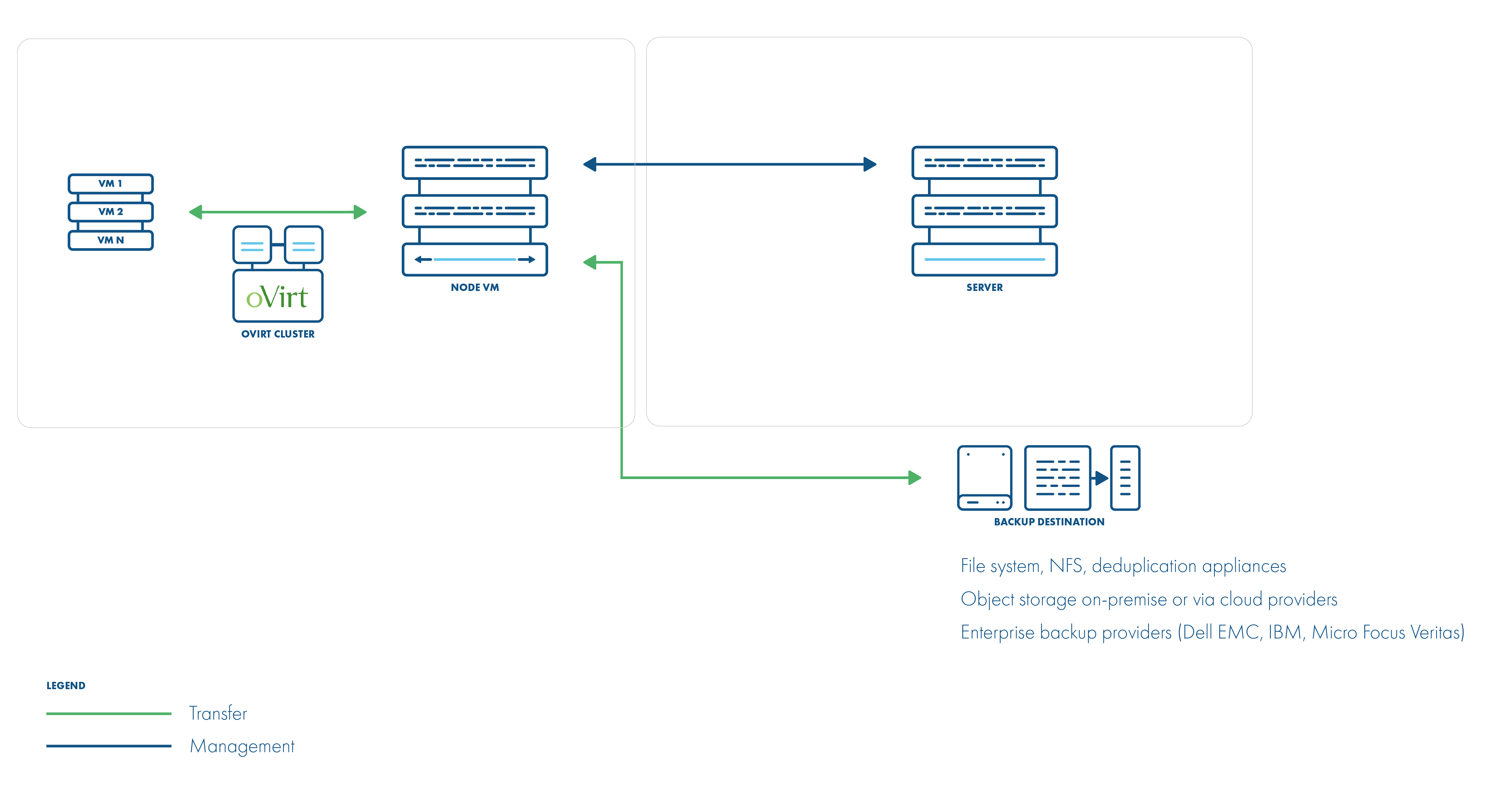 Unfortunately, there are a few problems with the current architecture of this solution. The biggest issue is that all traffic passes via the oVirt manager, which may impact the transfer rates that you can achieve during the backup process. To put that into perspective – in disk attachment, you can basically read data as if it is a local drive, where it could potentially be deduplicated even before it is transferred to the backup destination.