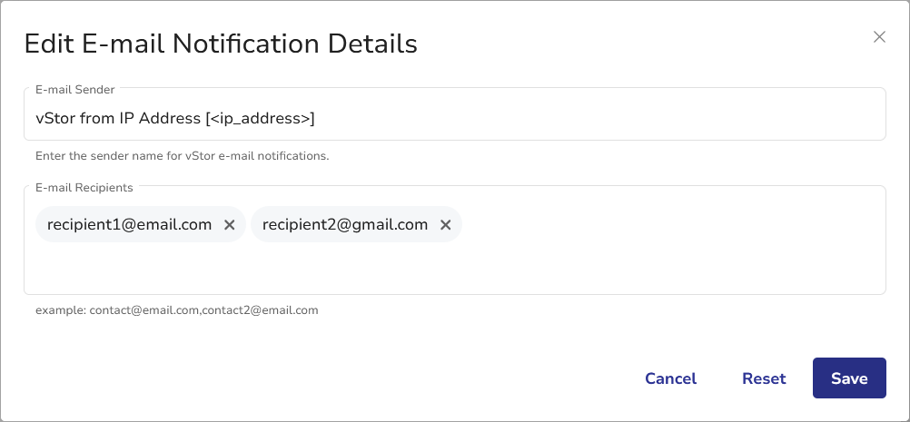 Enter the sender name for vStor e-mail notifications.