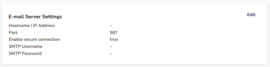 You can edit this section by clicking the Edit button to launch the Edit E-mail Server Settings dialog window.