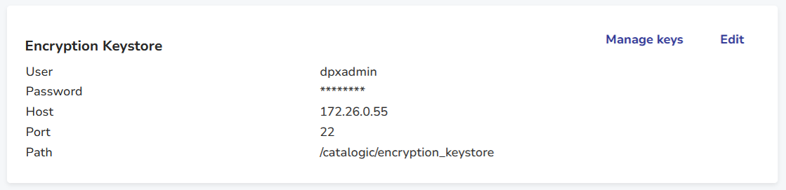 You can edit the section by clicking the Edit button to launch the Edit Encryption Keystore dialog window.