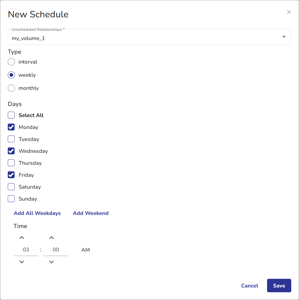Choose schedule type and select schedule details. - Click Save.