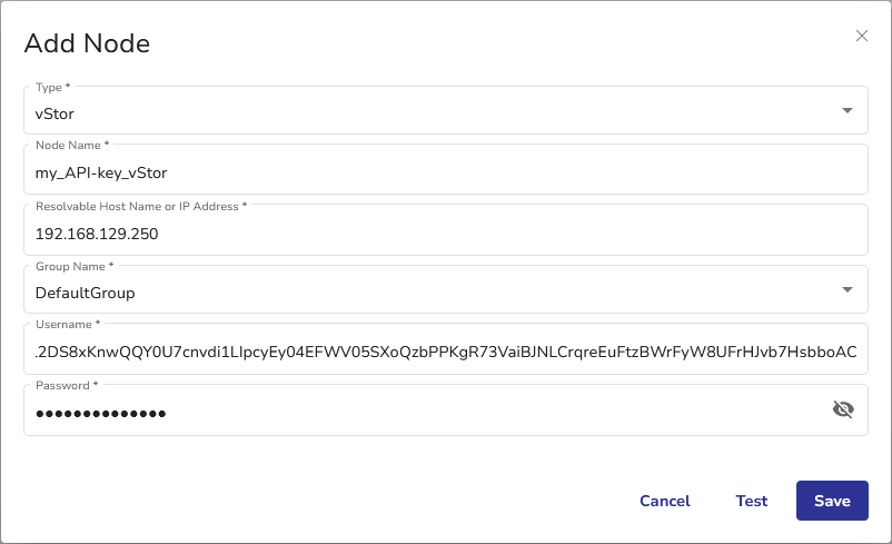 The node will now connect to DPX using the API key instead of your vStor username and password.