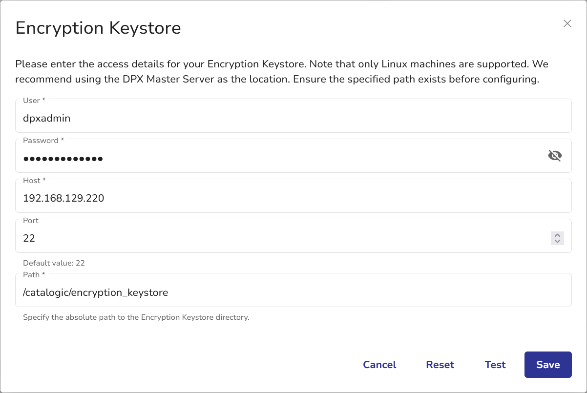 We recommend using your DPX Master Server as the remote Encryption Keystore, but you can use any Linux machine.