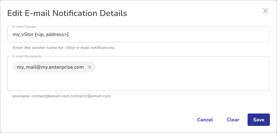 Enter the e-mail addresses that will receive notifications. Multiple recipients can be added by separating them with commas.