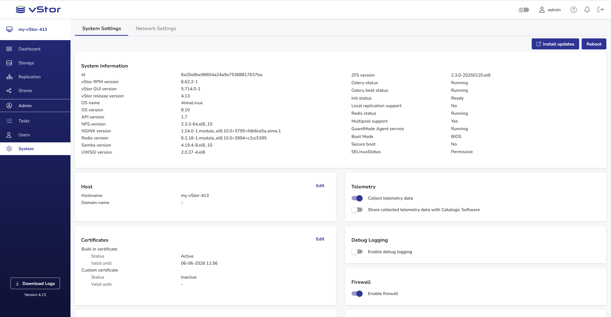 vStor System Settings