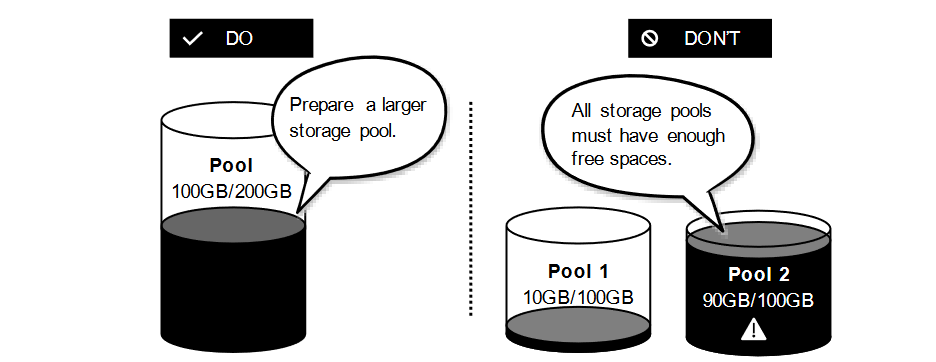 - The backup storage pool should not be used for other purposes, such as installing applications.