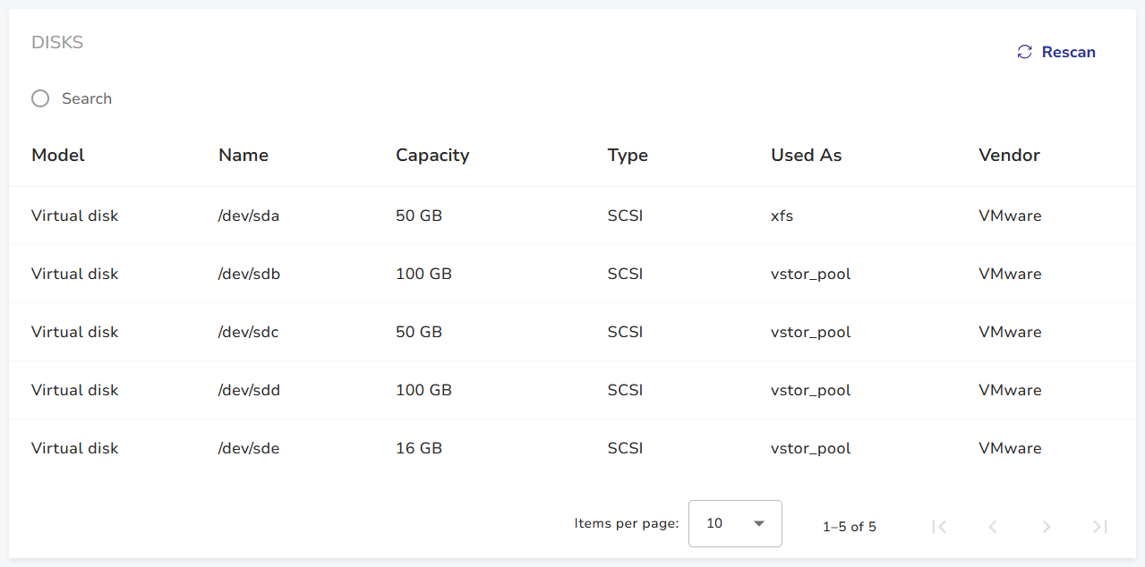 This section lists all disks and their details.